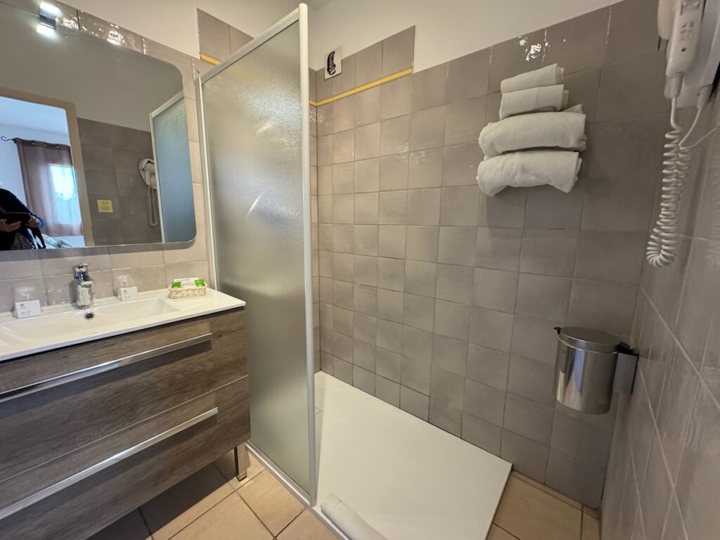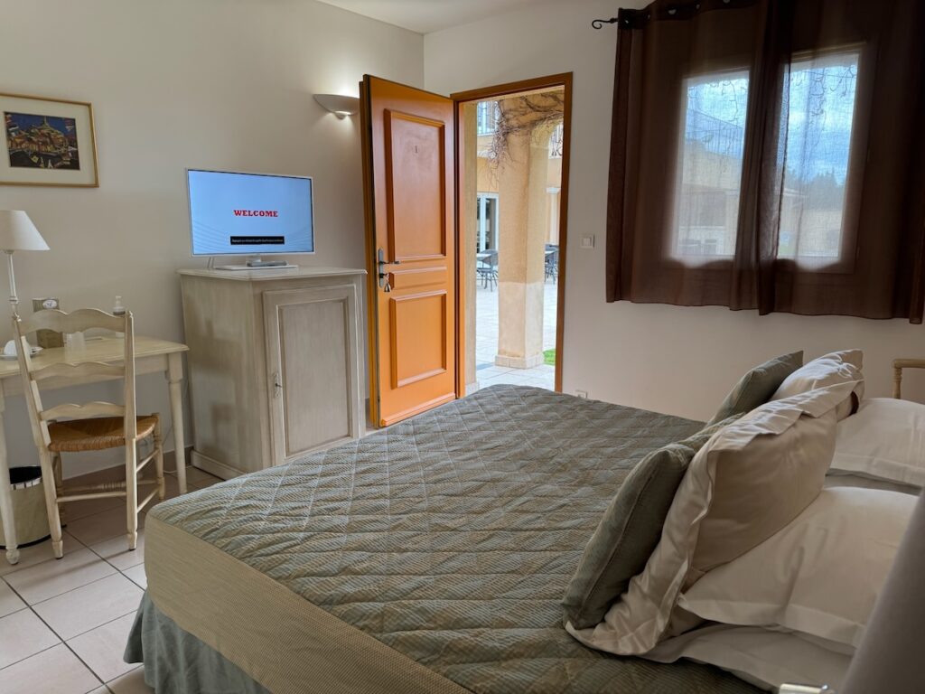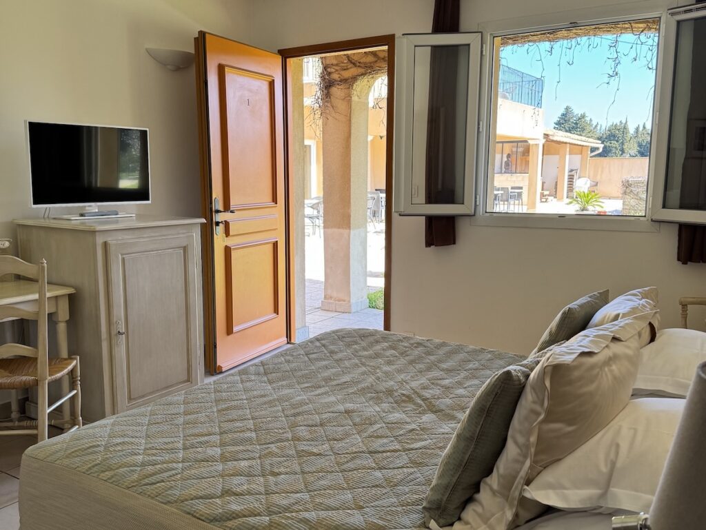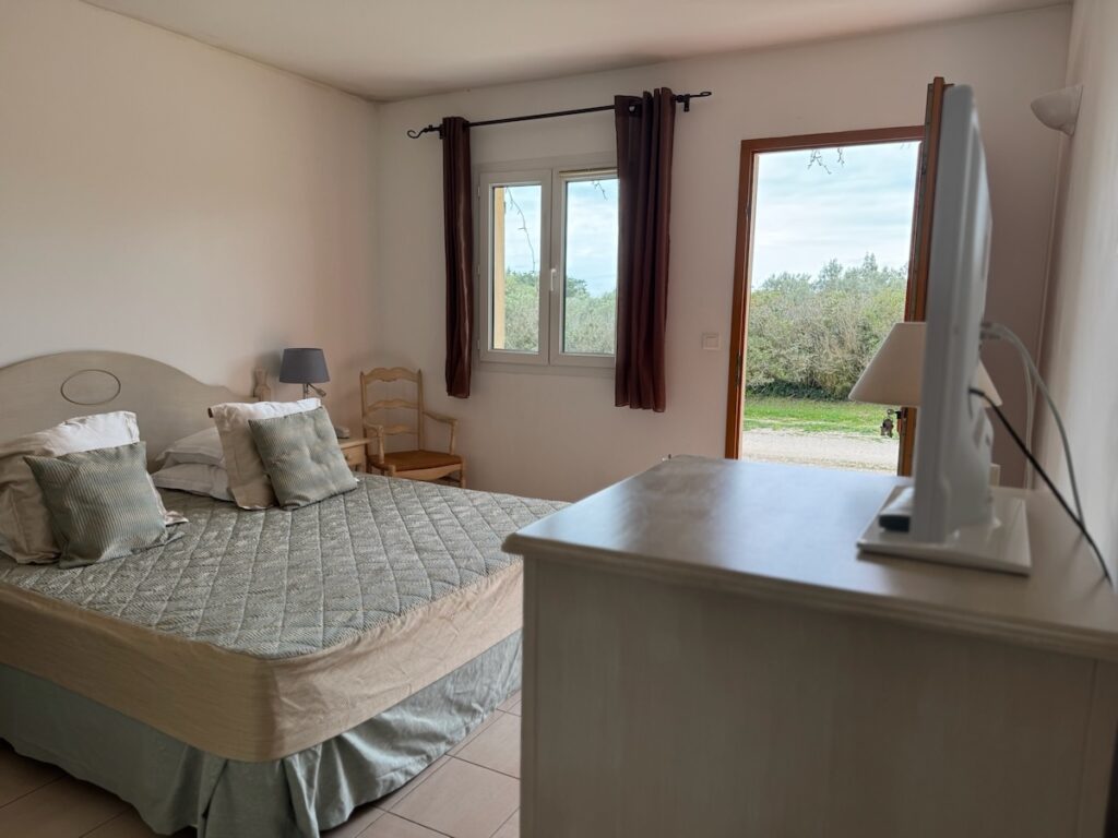 Équipements : Air-Conditionné, Douche ou Baignoire, WC séparé, Sèche-cheveux, Miroir grossissant lumineux, Accessoires de bain, Pantoufles, TV écran plat 80 cm connectée (Netflix et YouTube), Chaînes françaises et étrangères, WIFI gratuit, Insonorisation. Possibilité d’un grand lit ou de lits doubles